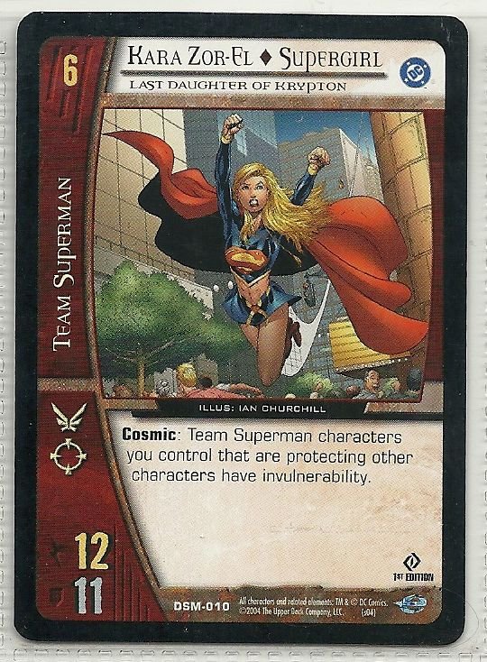 more Great cards @ www.everythingcollectibles.biz For Sale is a vs system Man of Steel Card DSM-010 Kara Zor-El @ Supergirl Last Daughter of Krypton common. all single cards are shipped in Penny Sleeves and top loaders. all orders ship with delivery confirmation as well. we usually ship within 2 days of receiving an order. Shipping is a Flat $2 no matter how many cards you buy 1 or 1000 its still $2.