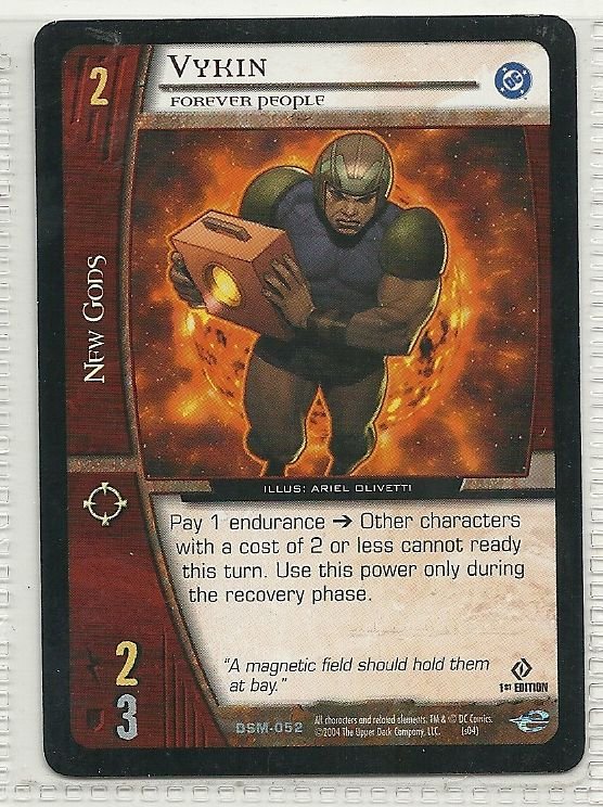 more Great cards @ www.everythingcollectibles.biz For Sale is a vs system Man of Steel Card DSM-052 Vykin Forever People Uncommon. all single cards are shipped in Penny Sleeves and top loaders. all orders ship with delivery confirmation as well. we usually ship within 2 days of receiving an order. Shipping is a Flat $2 no matter how many cards you buy 1 or 1000 its still $2.