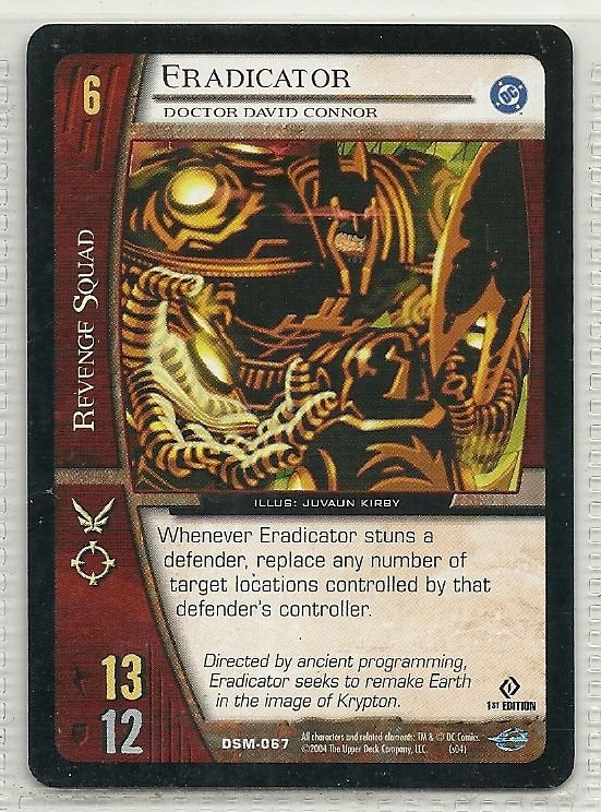 more Great cards @ www.everythingcollectibles.biz For Sale is a vs system Man of Steel Card DSM-067 Eradicator Doctor David Connor common. all single cards are shipped in Penny Sleeves and top loaders. all orders ship with delivery confirmation as well. we usually ship within 2 days of receiving an order. Shipping is a Flat $2 no matter how many cards you buy 1 or 1000 its still $2.