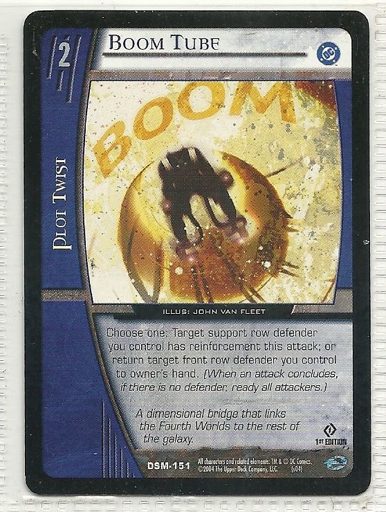 more Great cards @ www.everythingcollectibles.biz For Sale is a vs system Man Of Steel Card DSM-151 Boom Tube Common. all single cards are shipped in Penny Sleeves and top loaders. all orders ship with delivery confirmation as well. we usually ship within 2 days of receiving an order. Shipping is a Flat $2 no matter how many cards you buy 1 or 1000 its still $2.
