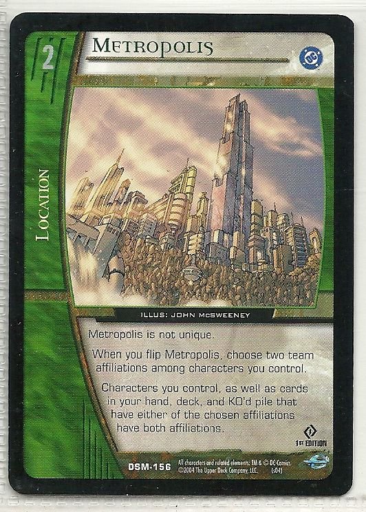 more Great cards @ www.everythingcollectibles.biz For Sale is a vs system Man of Steel Card DSM-156 Metropolis common. all single cards are shipped in Penny Sleeves and top loaders. all orders ship with delivery confirmation as well. we usually ship within 2 days of receiving an order. Shipping is a Flat $2 no matter how many cards you buy 1 or 1000 its still $2.