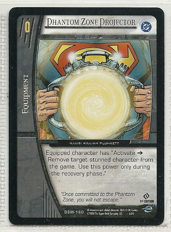 more Great cards @ www.everythingcollectibles.biz For Sale is a vs system Man of Steel Card DSM-160 Phantom Zone Projector Uncommon. all single cards are shipped in Penny Sleeves and top loaders. all orders ship with delivery confirmation as well. we usually ship within 2 days of receiving an order. Shipping is a Flat $2 no matter how many cards you buy 1 or 1000 its still $2