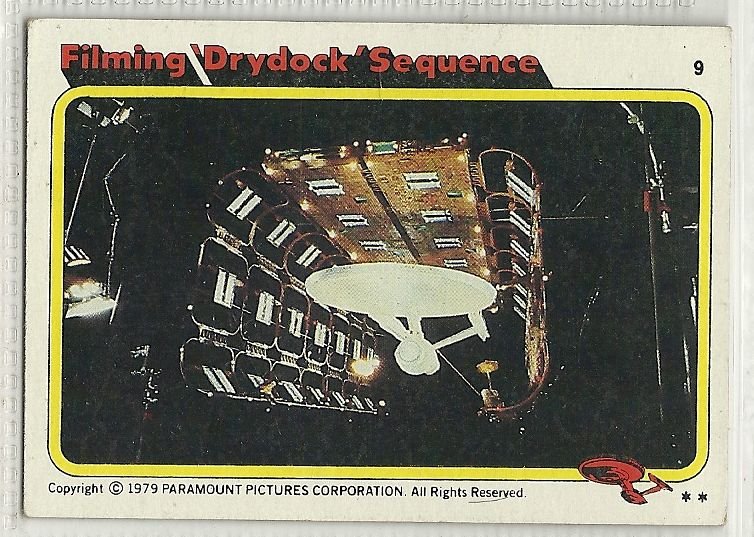more Great cards @ www.everythingcollectibles.biz For Sale is a 1979 Topps Star Trek The Motion Picture Card #9 Filming 'Drydock' Sequence. all single cards are shipped in Penny Sleeves and top loaders. if you have any questions please don't hesitate to ask. Fast same or next day shipping with delivery confirmation within the U.S. Shipping For each additional Card is Free within the United States.