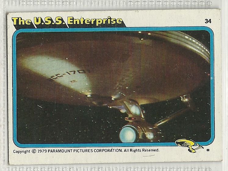 more Great cards @ www.everythingcollectibles.biz For Sale is a 1979 Topps Star Trek The Motion Picture Card #34 The U.S.S. Enterprise. all single cards are shipped in Penny Sleeves and top loaders. if you have any questions please don't hesitate to ask. Fast same or next day shipping with delivery confirmation within the U.S. Shipping For each additional Card is Free within the United States.