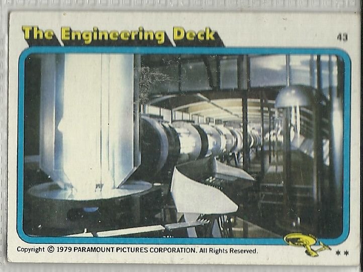 more Great cards @ www.everythingcollectibles.biz For Sale is a 1979 Topps Star Trek The Motion Picture Card #43 The Engineering Deck. all single cards are shipped in Penny Sleeves and top loaders. if you have any questions please don't hesitate to ask. Fast same or next day shipping with delivery confirmation within the U.S. Shipping For each additional Card is Free within the United States.