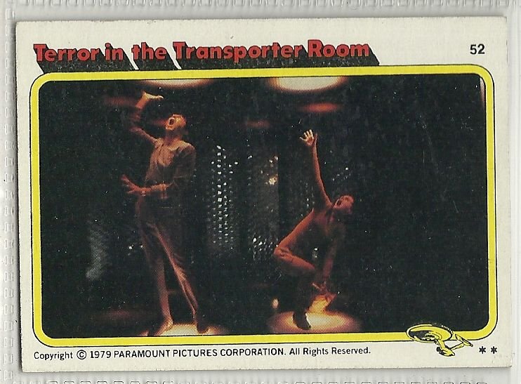 more Great cards @ www.everythingcollectibles.biz For Sale is a 1979 Topps Star Trek The Motion Picture Card #52 Terror in the Transporter Room. all single cards are shipped in Penny Sleeves and top loaders. if you have any questions please don't hesitate to ask. Fast same or next day shipping with delivery confirmation within the U.S. Shipping For each additional Card is Free within the United States.