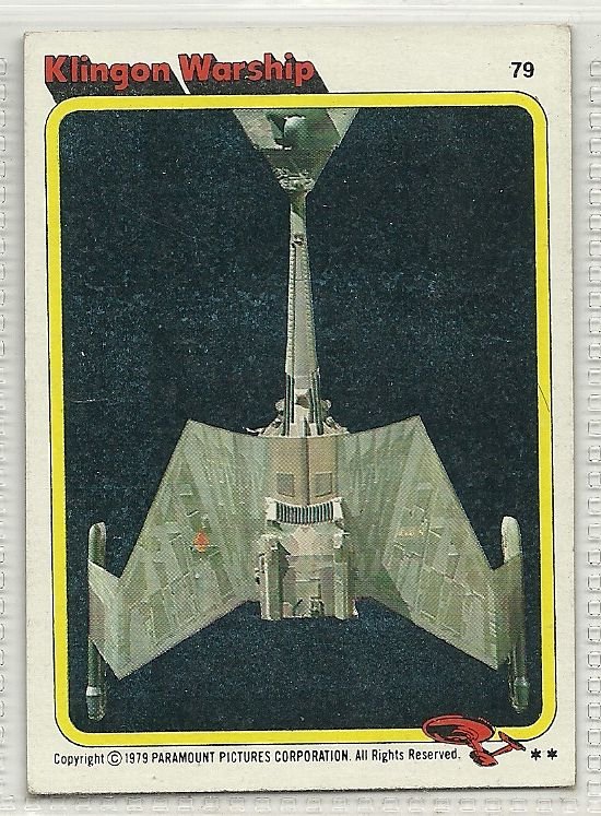 more Great cards @ www.everythingcollectibles.biz For Sale is a 1979 Topps Star Trek The Motion Picture Card #79 Klingon Warship. all single cards are shipped in Penny Sleeves and top loaders. if you have any questions please don't hesitate to ask. Fast same or next day shipping with delivery confirmation within the U.S. Shipping For each additional Card is Free within the United States.