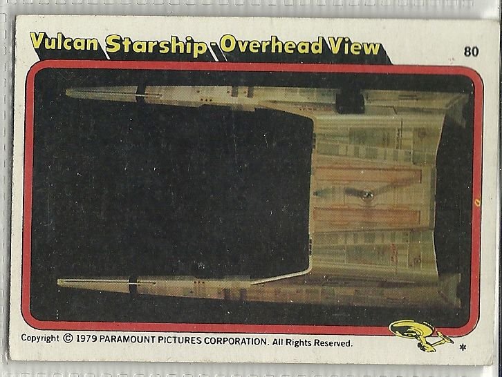 more Great cards @ www.everythingcollectibles.biz For Sale is a 1979 Topps Star Trek The Motion Picture Card #80 Vulcan Starship - Overhead View. all single cards are shipped in Penny Sleeves and top loaders. if you have any questions please don't hesitate to ask. Fast same or next day shipping with delivery confirmation within the U.S. Shipping For each additional Card is Free within the United States.