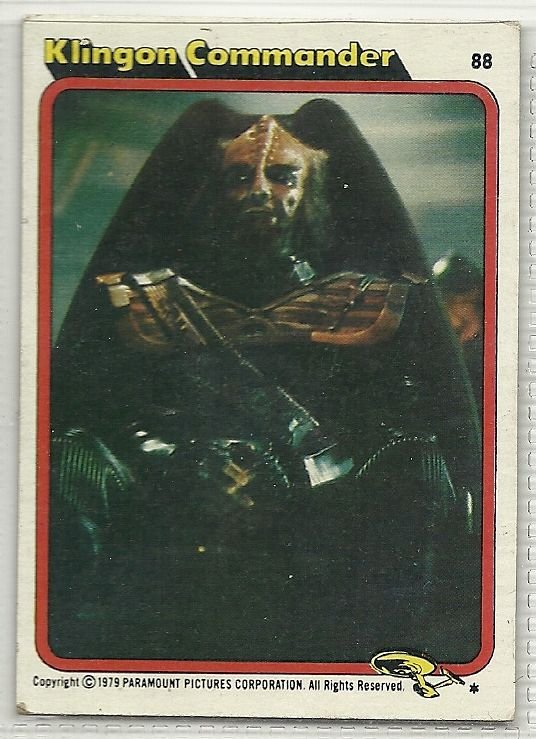 more Great cards @ www.everythingcollectibles.biz For Sale is a 1979 Topps Star Trek The Motion Picture Card #88 Klingon Commander. all single cards are shipped in Penny Sleeves and top loaders. if you have any questions please don't hesitate to ask. Fast same or next day shipping with delivery confirmation within the U.S. Shipping For each additional Card is Free within the United States.