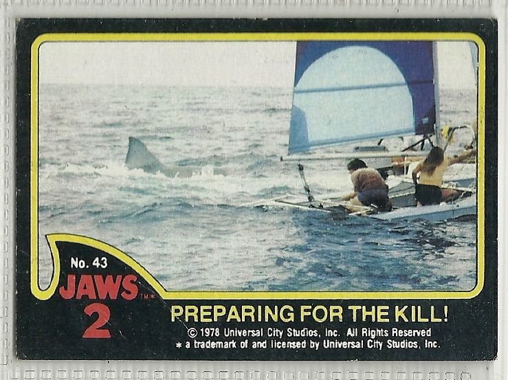 more Great cards @ www.everything-collectibles.com For Sale is a 1978 Topps Jaws 2 Card #43 Preparing for the Kill!!. all single cards are shipped in Penny Sleeves and top loaders. if you have any questions please don't hesitate to ask. Fast same or next day shipping with delivery confirmation within the U.S. Shipping For each additional Card is Free within the United States.