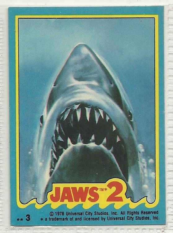more Great cards @ www.everything-collectibles.com For Sale is a 1978 Topps Jaws 2 Sticker #3 The Jaws of Death. all single cards are shipped in Penny Sleeves and top loaders. if you have any questions please don't hesitate to ask. Fast same or next day shipping with delivery confirmation within the U.S. Shipping For each additional Card is Free within the United States.