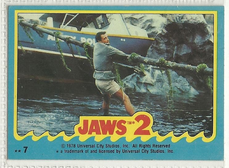 more Great cards @ www.everything-collectibles.com For Sale is a 1978 Topps Jaws 2 Sticker #7 Brody ... Clinging to Life!. all single cards are shipped in Penny Sleeves and top loaders. if you have any questions please don't hesitate to ask. Fast same or next day shipping with delivery confirmation within the U.S. Shipping For each additional Card is Free within the United States.