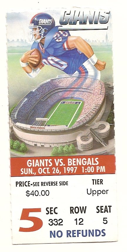 NFL Bengals @ Giants Ticket Stub Oct 26th 1997