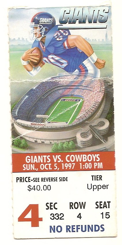 NFL Cowboys @ Giants Ticket Stub Oct 5th 1997