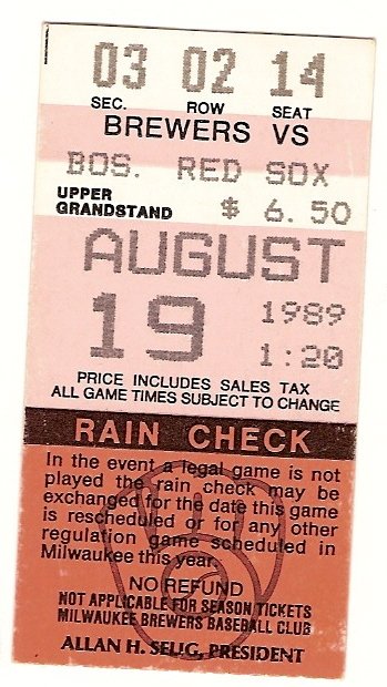 1989 Boston Red Sox @ Milwaukee Brewers ticket stub August 19th Yount Boggs Hits
