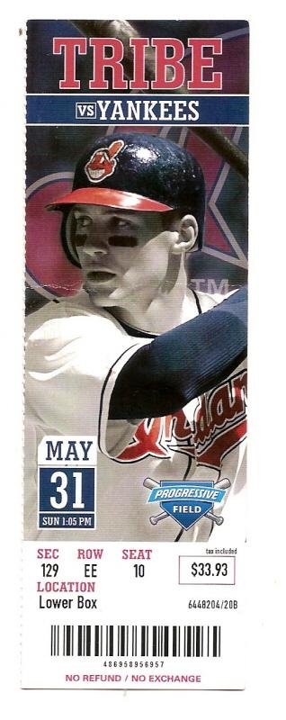 2009 New York Yankees @ Cleveland Indians Full Ticket May 31st Jeter 2 hits