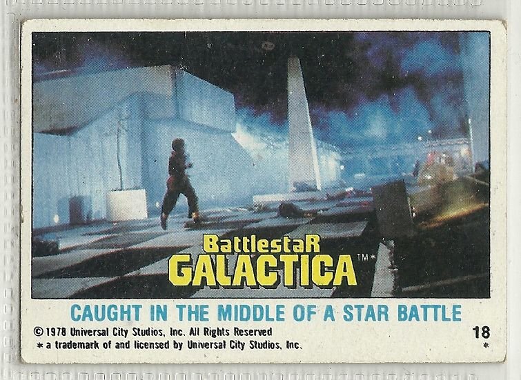 more Great cards @ www.everything-collectibles.com For Sale is a 1978 Topps Battlestar Galactica #18 Caught in the Middle of a Star Battle. all single cards are shipped in Penny Sleeves and top loaders. if you have any questions please don't hesitate to ask. Fast same or next day shipping with delivery confirmation within the U.S. Shipping For each additional Card is Free within the United States.