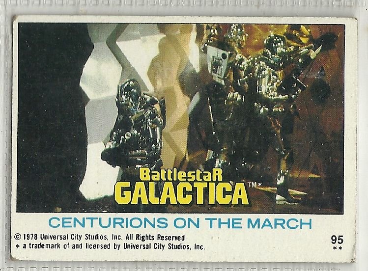 more Great cards @ www.everything-collectibles.com For Sale is a 1978 Topps Battlestar Galactica #95 Centurions on the March. all single cards are shipped in Penny Sleeves and top loaders. if you have any questions please don't hesitate to ask. Fast same or next day shipping with delivery confirmation within the U.S. Shipping For each additional Card is Free within the United States.