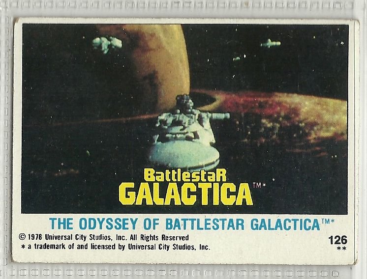more Great cards @ www.everything-collectibles.com For Sale is a 1978 Topps Battlestar Galactica #126 The Odyssey of Battlestar Galactica. all single cards are shipped in Penny Sleeves and top loaders. if you have any questions please don't hesitate to ask. Fast same or next day shipping with delivery confirmation within the U.S. Shipping For each additional Card is Free within the United States.