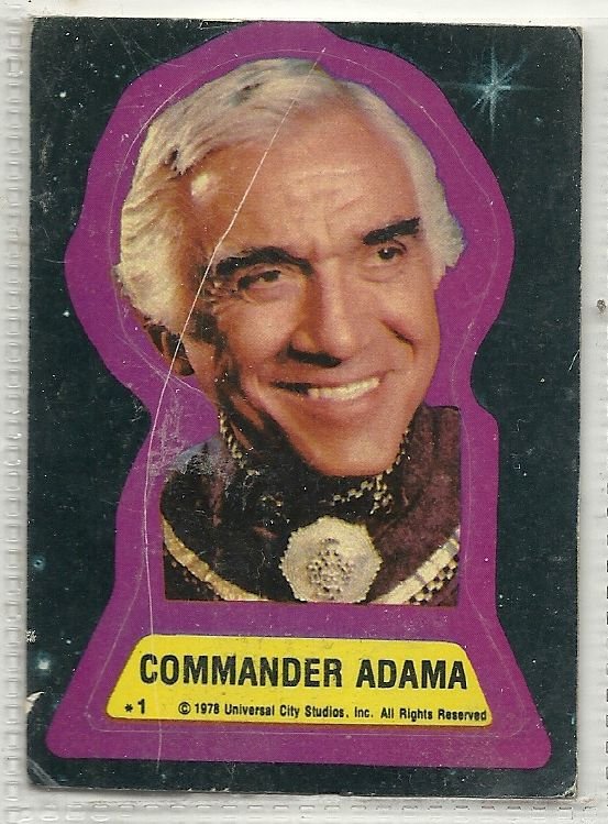 more Great cards @ www.everything-collectibles.com For Sale is a 1978 Topps Battlestar Galactica Sticker #1 Commander Adama. all single cards are shipped in Penny Sleeves and top loaders. if you have any questions please don't hesitate to ask. Fast same or next day shipping with delivery confirmation within the U.S. Shipping For each additional Card is Free within the United States.