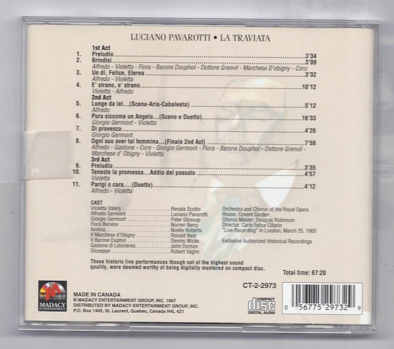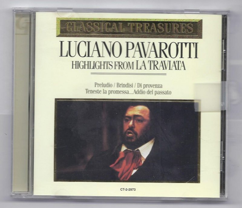 More Great CD's @ www.everything-collectibles.com For Sale is an Classical Treasures Luciano Pavarotti Hightlights From La Traviata CD. in good used condition. adult owned from private collection. please see photo for more details. what you see is what you will recieve. please dont hees