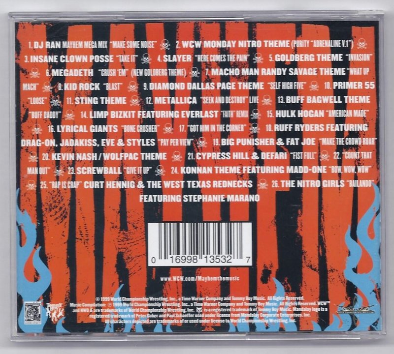More Great CD's @ www.everything-collectibles.com For Sale is an Mayham Music Of WCW Music CD. in good used condition. adult owned from private collection. please see photo for more details. what you see is what you will receive. please don't hesitate to ask. Free shipping within the US. Please note all CD's Ship via Media Mail.