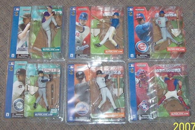 More Great Collectibles @ www.everything-collectibles.com McFarlane MLB series 1 Variant Chase Figure Collection 6 different! Ichro, Sosa, Johnson, Green, Rodriguez, And Pizza All variant chase Jerseys. Its in mint Condition as you can see from the picture. what you see is what you get. Insurance will be extra.
