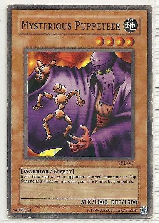 more Great cards @ www.everythingcollectibles.biz For Sale is a YuGiOh American Kaiba Evolution Deck Single Card SKE-017 Mysterious Puppeteer. all single cards are shipped in Penny Sleeves and top loaders. all orders ship with delivery confirmation as well. we usually ship within 2 days of receiving an order. Shipping is a Flat $2 no matter how many cards you buy 1 or 1000 its still $2.