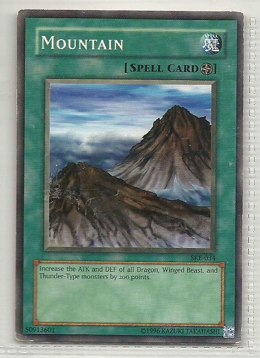 more Great cards @ www.everythingcollectibles.biz For Sale is a YuGiOh American Kaiba Evolution Deck Single Card SKE-034 Mountain. all single cards are shipped in Penny Sleeves and top loaders. all orders ship with delivery confirmation as well. we usually ship within 2 days of receiving an order. Shipping is a Flat $2 no matter how many cards you buy 1 or 1000 its still $2.