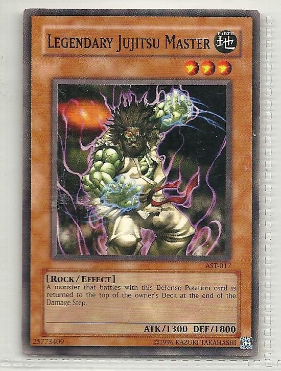 more Great cards @ www.everythingcollectibles.biz For Sale is a YuGiOh Ancient Sanctuary Single Card Common AST-017 Legendary Jujitsu Master. all single cards are shipped in Penny Sleeves and top loaders. all orders ship with delivery confirmation as well. we usually ship within 2 days of receiving an order. Shipping is a Flat $2 no matter how many cards you buy 1 or 1000 its still $2.