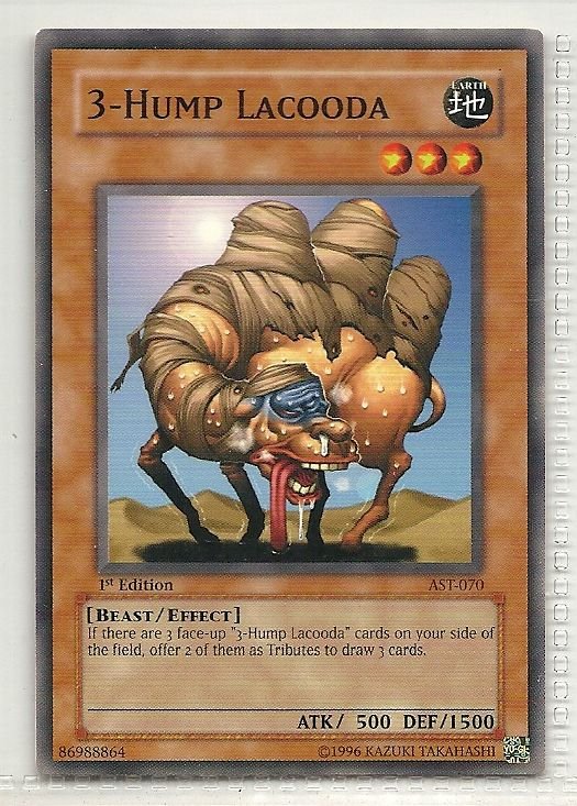 more Great cards @ www.everythingcollectibles.biz For Sale is a YuGiOh Ancient Sanctuary Single Card Common AST-070 3-Lump Lacooda. all single cards are shipped in Penny Sleeves and top loaders. all orders ship with delivery confirmation as well. we usually ship within 2 days of receiving an order. Shipping is a Flat $2 no matter how many cards you buy 1 or 1000 its still $2.