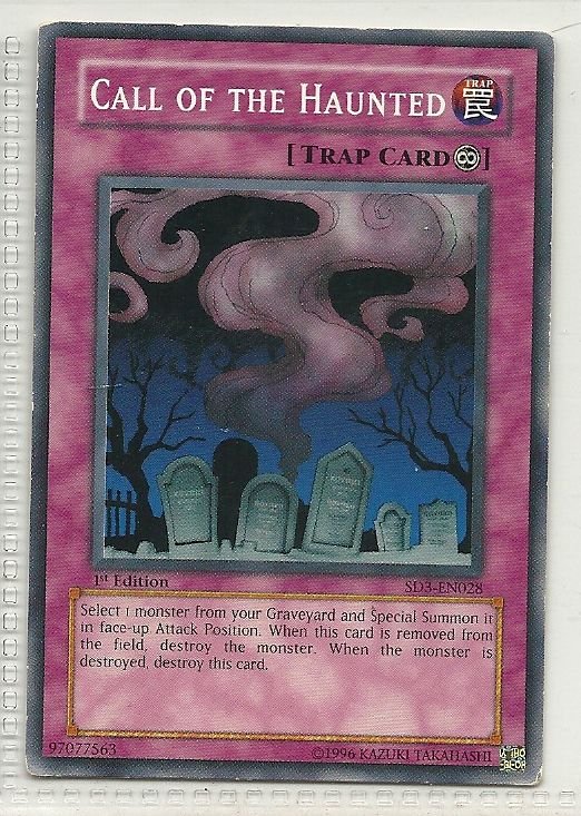 more Great cards @ www.everythingcollectibles.biz For Sale is a YuGiOh Blaze of Destruction Single Card SD3-EN028 Call of the Haunted. all single cards are shipped in Penny Sleeves and top loaders. all orders ship with delivery confirmation as well. we usually ship within 2 days of receiving an order. Shipping is a Flat $2 no matter how many cards you buy 1 or 1000 its still $2.