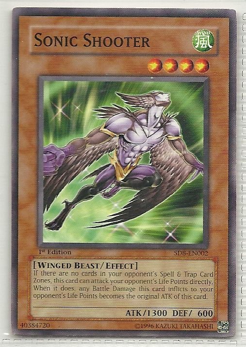 more Great cards @ www.everythingcollectibles.biz For Sale is a YuGiOh GX Lord of the Storm Single Card Common SD8-EN002 Sonic Shooter. all single cards are shipped in Penny Sleeves and top loaders. all orders ship with delivery confirmation as well. we usually ship within 2 days of receiving an order. Shipping is a Flat $2 no matter how many cards you buy 1 or 1000 its still $2.