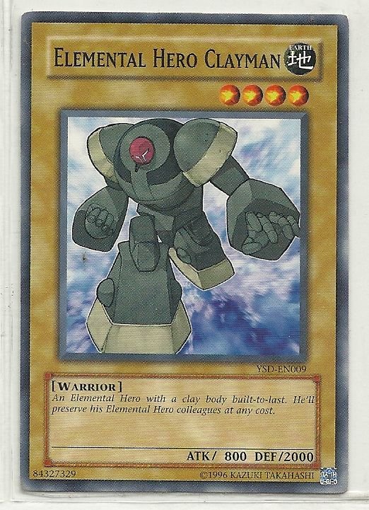 more Great cards @ www.everythingcollectibles.biz For Sale is a YuGiOh GX Starter Deck 2006 Single Card Common YSD-EN009 Elemental Hero Clayman. all single cards are shipped in Penny Sleeves and top loaders. all orders ship with delivery confirmation as well. we usually ship within 2 days of receiving an order. Shipping is a Flat $2 no matter how many cards you buy 1 or 1000 its still $2.