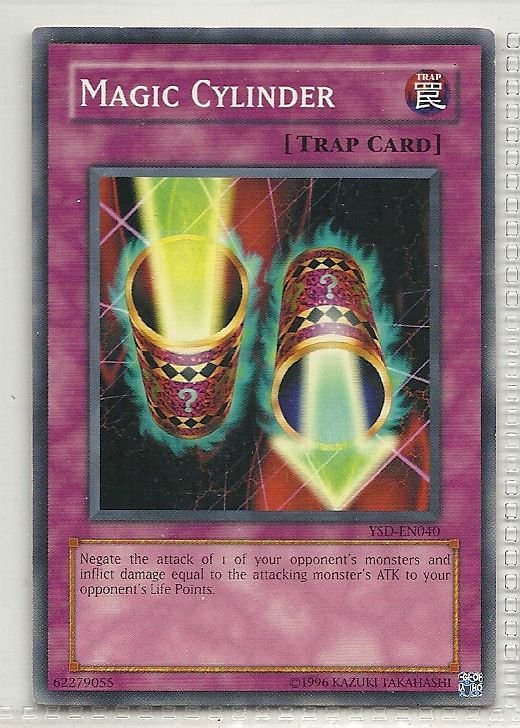 more Great cards @ www.everythingcollectibles.biz For Sale is a YuGiOh GX Starter Deck 2006 Single Card Common YSD-EN040 Magic Cylinder. all single cards are shipped in Penny Sleeves and top loaders. all orders ship with delivery confirmation as well. we usually ship within 2 days of receiving an order. Shipping is a Flat $2 no matter how many cards you buy 1