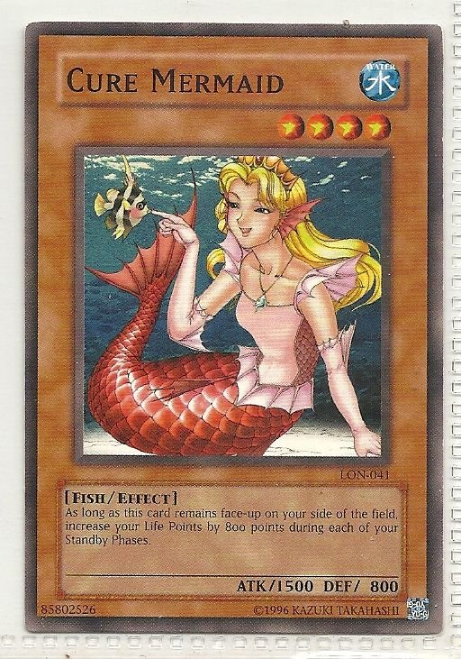 more Great cards @ www.everythingcollectibles.biz For Sale is a YuGiOh Labyrinth of Nightmare Single Card Common LON-041 Cure Mermaid. all single cards are shipped in Penny Sleeves and top loaders. all orders ship with delivery confirmation as well. we usually ship within 2 days of receiving an order. Shipping is a Flat $2 no matter