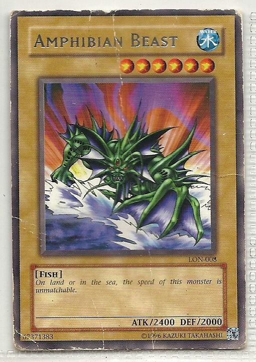 more Great cards @ www.everythingcollectibles.biz For Sale is a YuGiOh Labyrinth of Nightmare Single Card Rare LON-008 Amphibian Beast. all single cards are shipped in Penny Sleeves and top loaders. all orders ship with delivery confirmation as well. we usually ship within 2 days of receiving an order. Shipping is a Flat $2 no