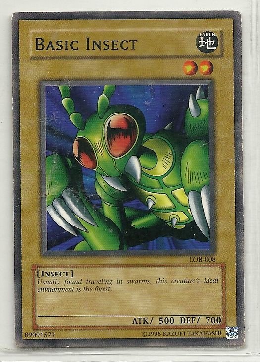 more Great cards @ www.everythingcollectibles.biz For Sale is a YuGiOh Legend of Blue Eyes White Dragon Single Card Common LOB-008 Basic Insect. all single cards are shipped in Penny Sleeves and top loaders. all orders ship with delivery confirmation as well. we usually ship within 2 days of receiving an order. Shipping is a Flat