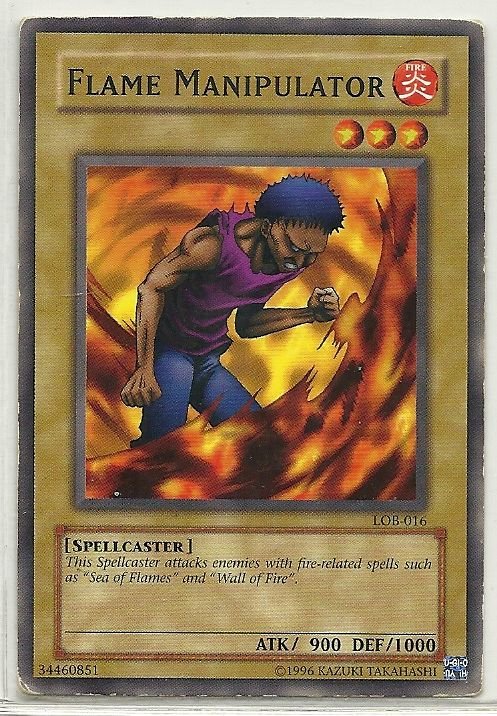 more Great cards @ www.everythingcollectibles.biz For Sale is a YuGiOh Legend of Blue Eyes White Dragon Single Card Common LOB-016 Flame Manipulator. all single cards are shipped in Penny Sleeves and top loaders. all orders ship with delivery confirmation as well. we usually ship within 2 days of receiving an order. Shipping is a
