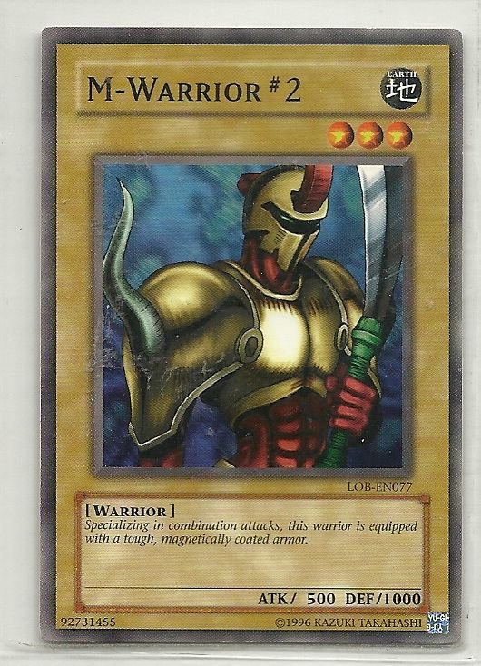 more Great cards @ www.everythingcollectibles.biz For Sale is a YuGiOh Legend of Blue Eyes White Dragon Single Card Common LOB-077 M-Warrior #2. all single cards are shipped in Penny Sleeves and top loaders. all orders ship with delivery confirmation as well. we usually ship within 2 days of receiving an order. Shippin