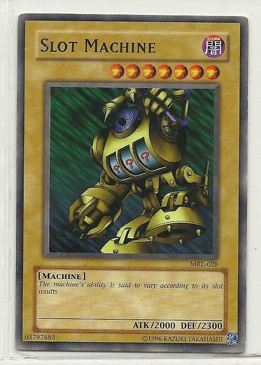 more Great cards @ www.everythingcollectibles.biz For Sale is a YuGiOh Magic Ruler Single Card Common MRL-028 Slot Machine. all single cards are shipped in Penny Sleeves and top loaders. all orders ship with delivery confirmation as well. we usually ship within 2 days of receiving an ord