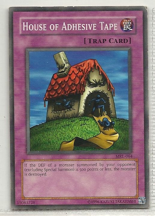 more Great cards @ www.everythingcollectibles.biz For Sale is a YuGiOh Magic Ruler Single Card Common MRL-064 House of Adhesive Tape. all single cards are shipped in Penny Sleeves and top loaders. all orders ship with delivery confirmation as well. we usually ship within 2 days of receiving an