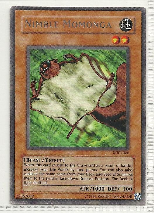 more Great cards @ www.everythingcollectibles.biz For Sale is a YuGiOh Magic Ruler Single Card Rare MRL-086 Nimble Momonga. all single cards are shipped in Penny Sleeves and top loaders. all orders ship with delivery confirmation as well. we usually ship within 2 days
