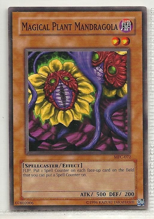 more Great cards @ www.everythingcollectibles.biz For Sale is a YuGiOh Magician's Force Single Card Common MFC-072 Magical Plant Mandragola. all single cards are shipped in Penny Sleeves and top loaders. all orders ship with delivery confirmation as well. we usually