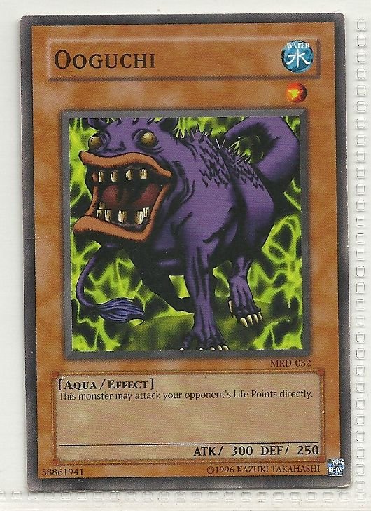 more Great cards @ www.everythingcollectibles.biz For Sale is a YuGiOh Metal Raiders Single Card Common MRD-032 Ooguchi. all single cards are shipped in Penny Sleeves and top loaders. all orders ship with delivery confirmation as well. we usually