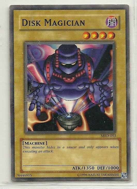 more Great cards @ www.everythingcollectibles.biz For Sale is a YuGiOh Metal Raiders Single Card Common MRD-053 Disk Magician. all single cards are shipped in Penny Sleeves and top loaders. all orders ship with delivery confirmation as well