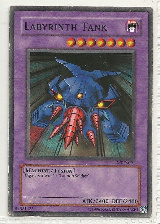 more Great cards @ www.everythingcollectibles.biz For Sale is a YuGiOh Metal Raiders Single Card Common MRD-091 Labyrinth Tank. all single cards are shipped in Penny Sleeves and top loaders. all orders ship with delivery confirmation as