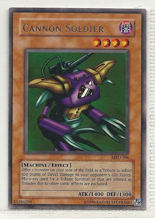 more Great cards @ www.everythingcollectibles.biz For Sale is a YuGiOh Metal Raiders Single Card Rare MRD-106 Cannon Soldier. all single cards are shipped in Penny Sleeves and top loaders. all orders ship with delivery confirmation as