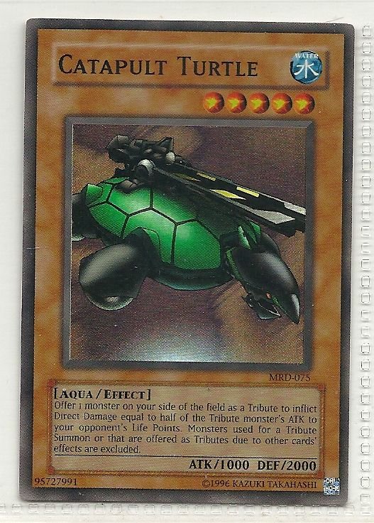 more Great cards @ www.everythingcollectibles.biz For Sale is a YuGiOh Metal Raiders Single Card Super Rare MRD-075 Catapult Turtle. all single cards are shipped in Penny Sleeves and top loaders. all orders ship with delivery confirmation as