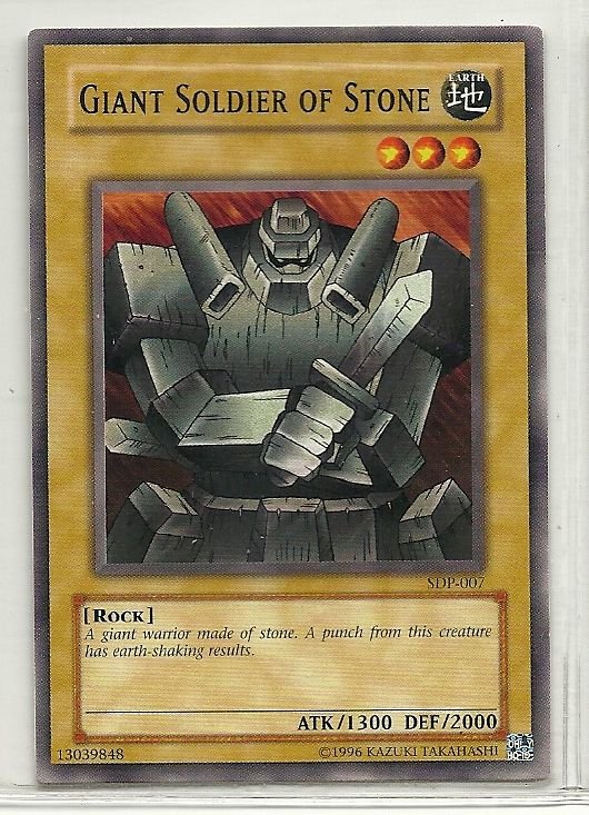 more Great cards @ www.everythingcollectibles.biz For Sale is a YuGiOh Pegasus Starter Deck Single Card Giant Soldier of Stone SDP-007. all single cards are shipped in Penny Sleeves and top loaders. all orders ship with delivery confirmation as